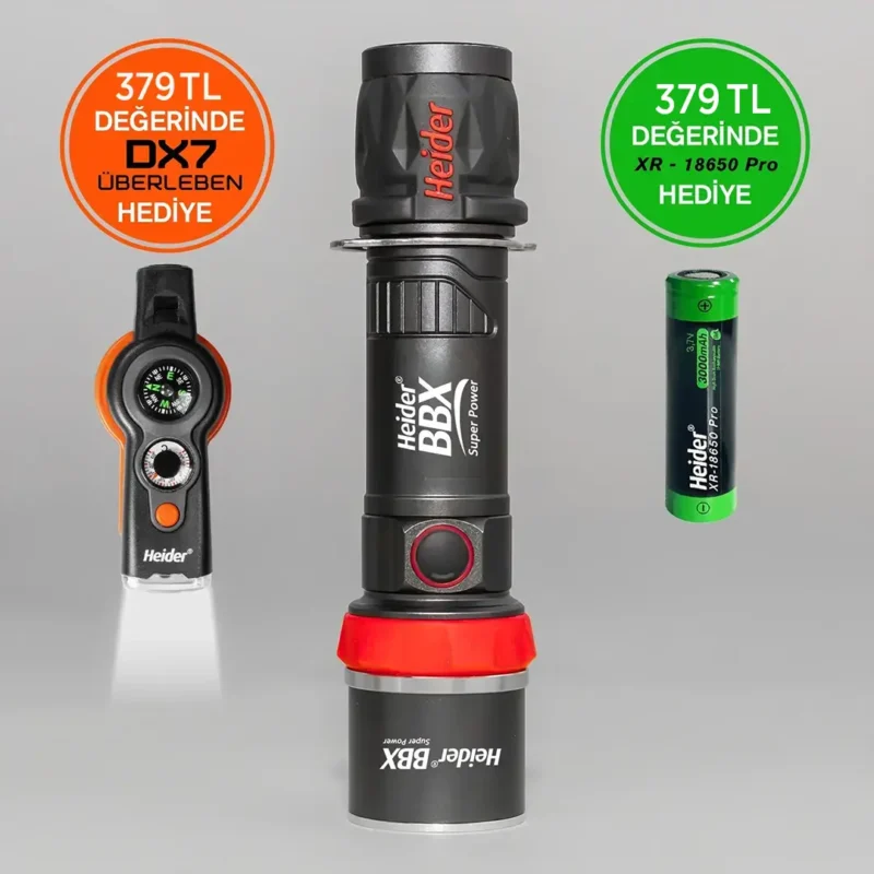- Hediyeler: 379 TL değerinde Heider DX7 Uberleben çok fonksiyonlu Düdük-Fener + 379 TL değerinde Heider XR1850 Pro Şarjlı Pil (Toplam 2 Pil)