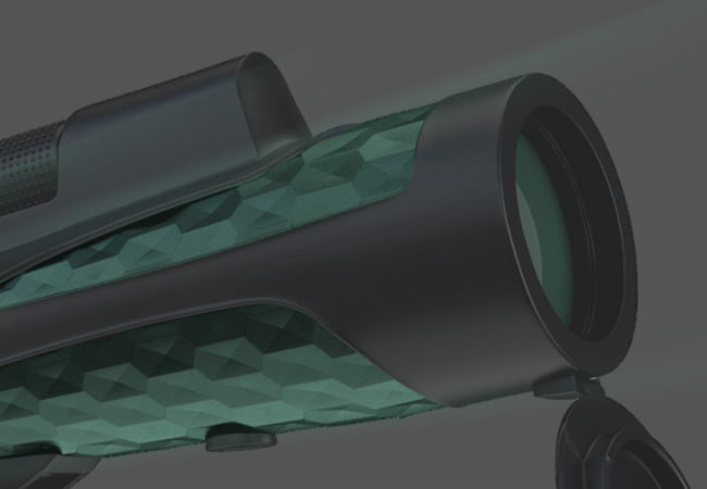 Gövde, özel bir kauçuk türünden üretilmiştir ve küçük darbelere ve düşmelere karşı dürbünü korur. Aynı zamanda kullanılan özel materyallerden dolayı toz tutmaz ve ergonomik bir tasarıma sahiptir. Gövde tasarımı ve olukları HDX v2 Monoscope’un avuç içine daha rahat oturması için özel olarak dizayn edilmiştir.