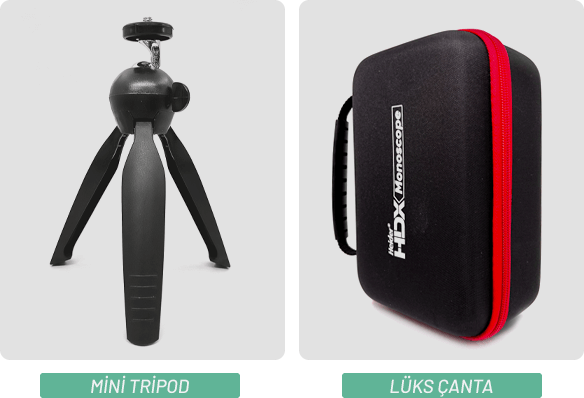 Heider HDX v2 Monoscope, oldukça basit monte edilebilen bir telefon tutucu ile birlikte gelir. Telefon aparatını istediğiniz zaman basitçe takıp çok uzak mesafelere cihazınızla zoom yapabilirsiniz. Ayrıca Heider HDX v2'de mini bir tripod ayak bulunur. Böylece istediğiniz her yerde düzgün fotoğraflar çekmenize olanak sağlar. Tüm bu parçaları lüks çantası ile her yere kolayca taşıyabilirsiniz. HDX v2'nin yanında gelen bu parçalar ücretsiz olarak sunulmaktadır.