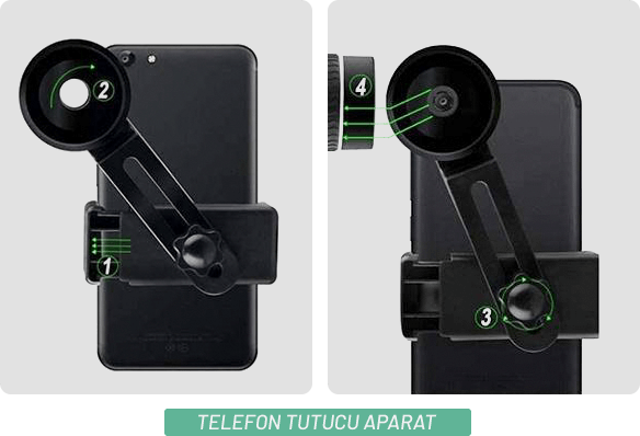 Bu adaptör, her tür akıllı telefon ile uyumludur. Akıllı telefonunuz için telefon tutucu parçasını kolayca ayarlayabilirsiniz. Kullanım kılavuzunda da gösterildiği gibi, adaptörü HDX’e takmadan önce telefona takmanız ve telefon kamerasını adaptör yuvarlağına ortalamalısınız. Ortaladıktan sonra elle çevireceğiniz sıkıştırma vidası sayesinde sabitlemeniz gerekmektedir. Ondan sonra aparatın yuvarlak başlığını HDX’in objektifine yerleştirebilirsiniz.